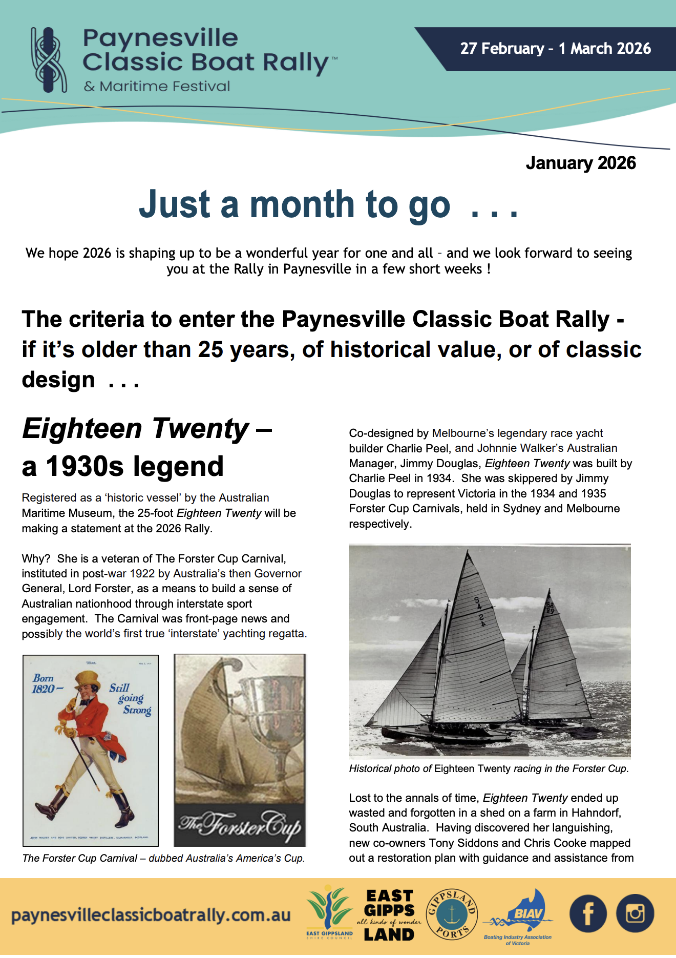 The only (at least for the moment) Classic Boat Festival in Victoria, will be underway before the short month of February is over. So hurry up and plan your visit to the lovely lakeside town, using their just released Newsletter. (Click for the full Publication)