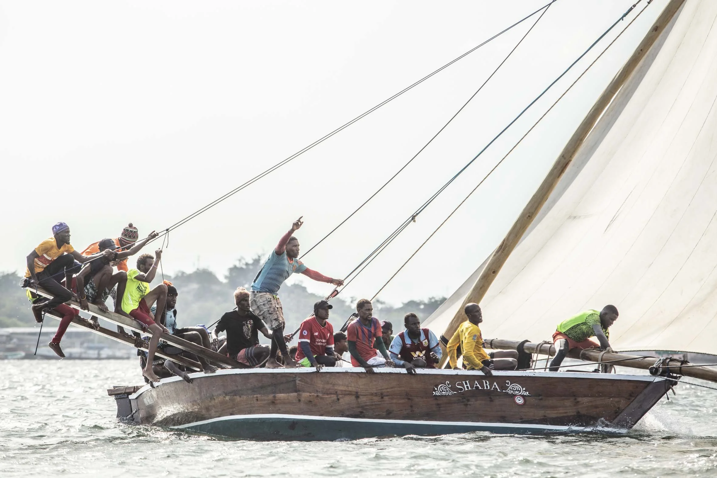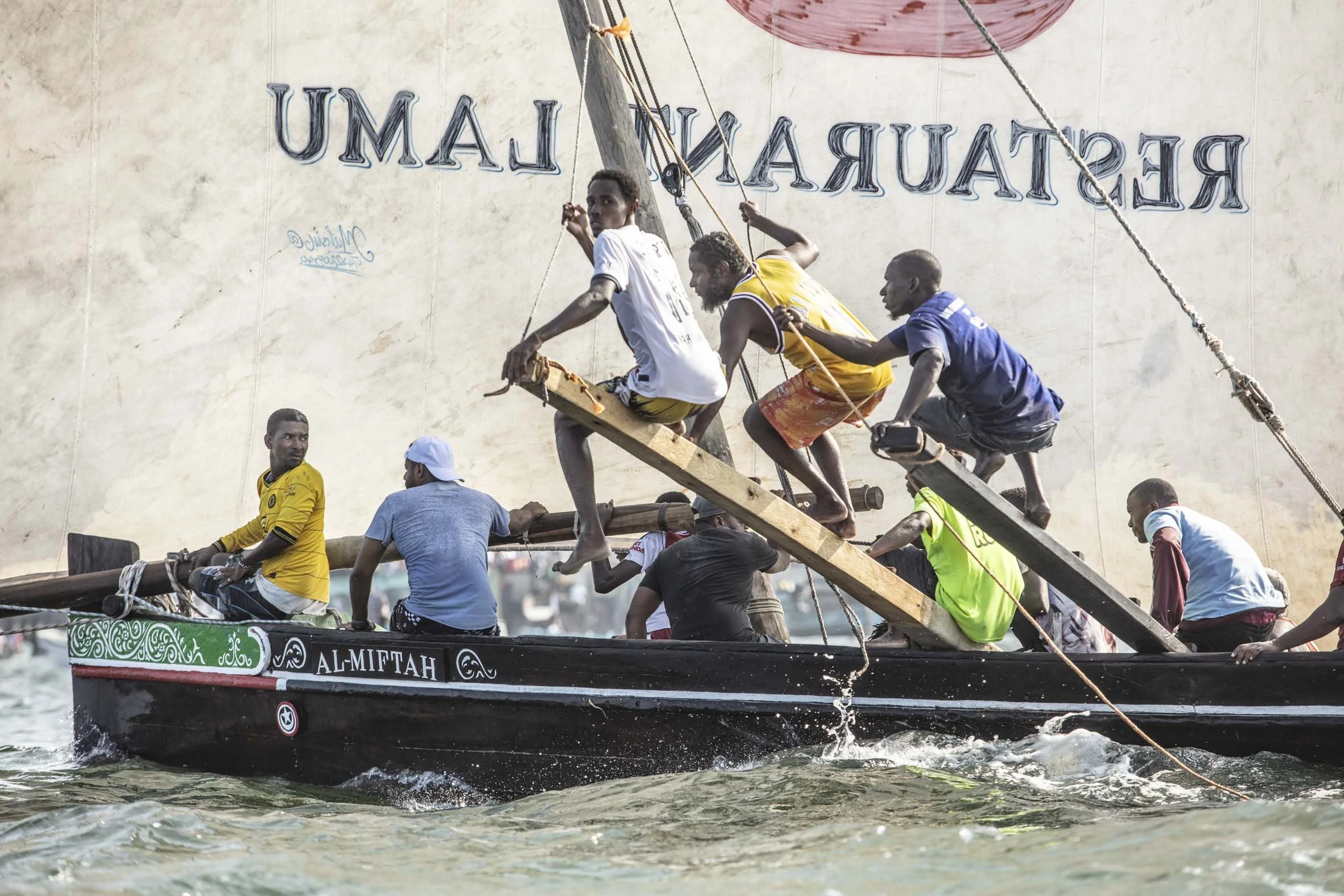 Mozambique style double ended dhows, racing with hiking boards in Lamu