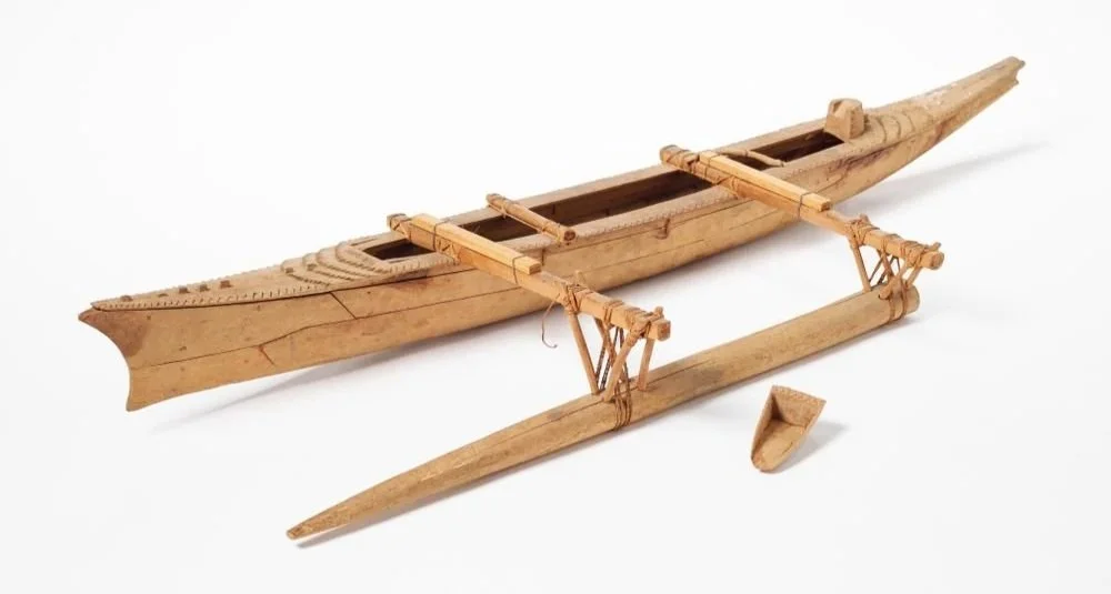 The philosophical ancestor of the hiking board is arguably the outrigger itself. Outrigger boats were essential in the transportation of Austronesians both eastward to Polynesia and New Zealand and westward across the Indian Ocean as far as Madagascar during the Austronesian migration period. On a single-outrigger canoe, the crew instinctively positioned themselves to windward to counterbalance the sail's heeling force — the outrigger providing a structural extension of exactly the same principle as a hiking board. The crew member sitting on or beyond the outrigger beam is, in essence, doing what a hiking board formalises. This practice is certainly thousands of years old but dating it precisely is impossible.
